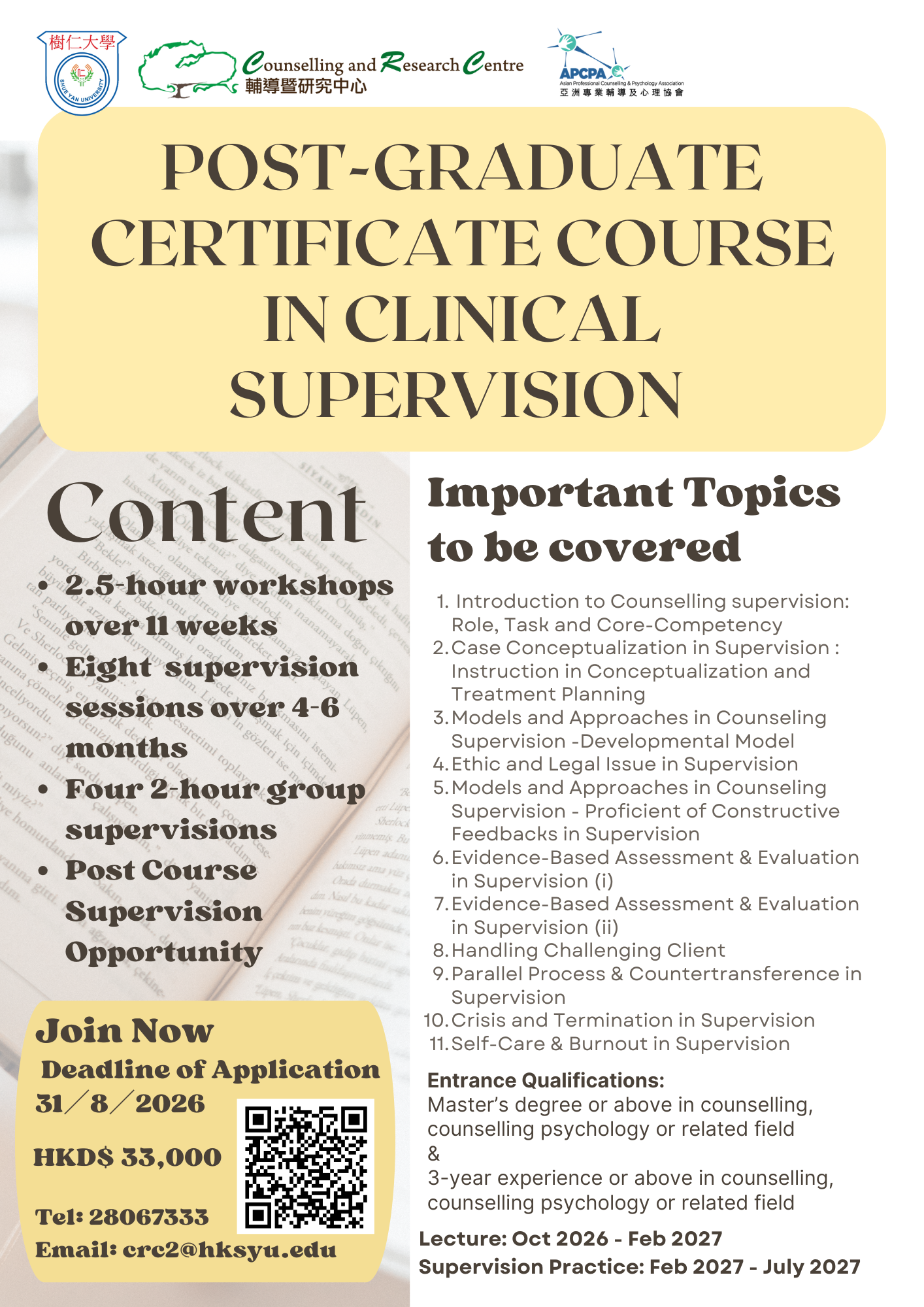 Apply Now! "Certificate Course in Clincal Supervision" 2026-27